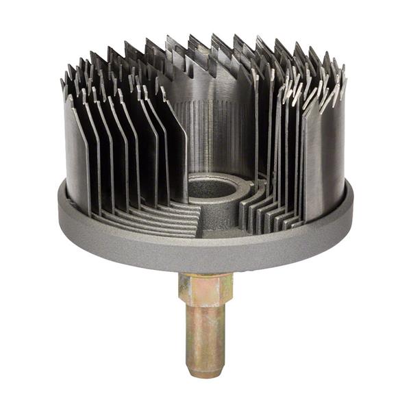 Aluminio moldeado a presi?n. Adecuado para madera para construcci?n /madera gruesa, tableros recubiertos/paneles tipo s?ndwich, tablas de virutas prensadas, polipropileno (PP), polietileno (tubos, barras, perfiles) (PE), materiales de aislamiento, vidrio acr?lico (plexigl?s), PMMA, carton de yeso, placas de fibra de yeso, madera blanda. 8 unid. ? 25-32-38-44-51-57-63-68 mm.