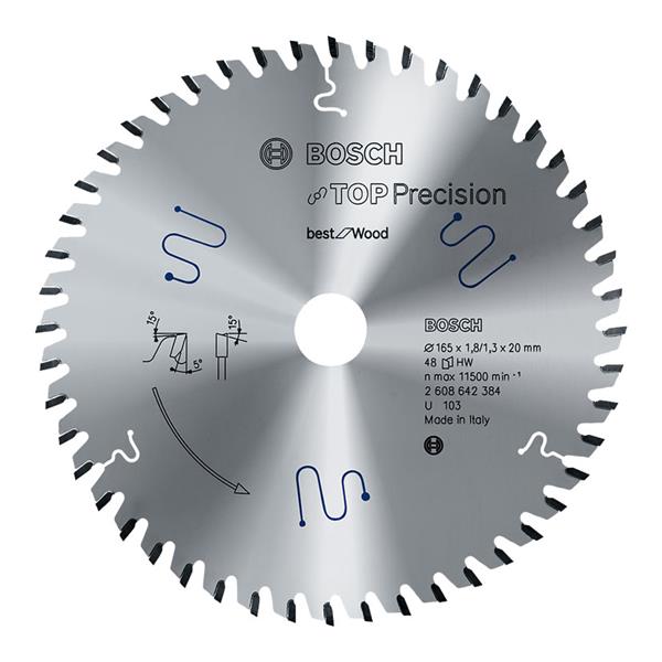 Tablas de virutas prensadas, paneles acusticos Paneles de construccion ligera, materiales compuestos, madera blanda, madera dura/madera maciza, madera prensada estratificada, madera contrachapada/tablero de carpintero, tablero MDF recubierto. ? 165x1,8x20 mm. 48 dientes.