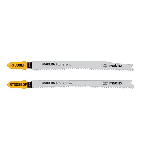 Tipo corte: recto/curvo. Grosor corte: 1,5-50 mm. Hoja: Bimaterial 117 mm. Paso diente: 2,2 mm XC. 2 sierras corte recto RT308BF. 1 sierra corte curvo RT308BOF.