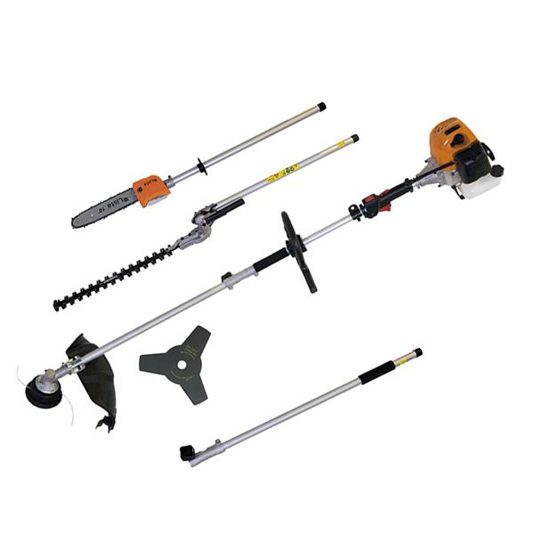 Manillar Delta con arnés, cabezal 2 hilos, disco acero, cortasetos y accesorio podador. Motor 51,7 cc. Potencia: 1,45 Kw. Arranque fácil.