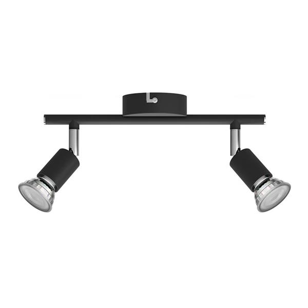 Estructura metal color negro. Cabezales orientables. Apto para l?mparas casquillo GU-10 m?x 50 W. (L?mparas no incluidas). 2 focos. 32,4x8xh.13 cm.
