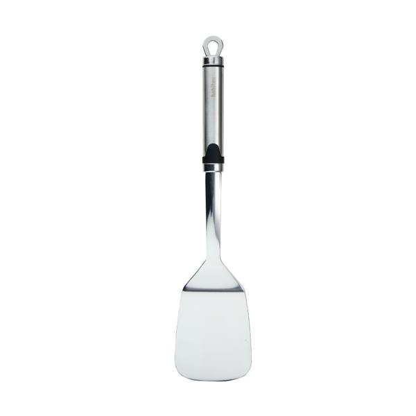 Acero inox de alta resistencia. Mango ovalado con colgador. Aptos para lavavajillas. Espátula flexible inox. 35,1 cm.
