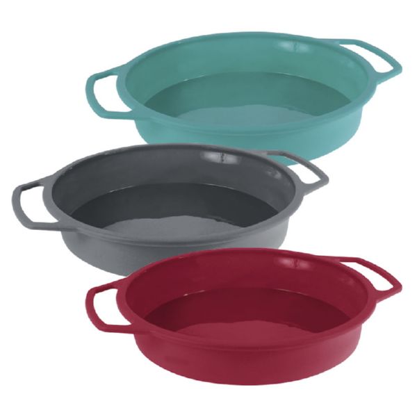 Incorporan un refuerzo metálico para que no se deformen. Dimensiones: Ø 26 cm.xh. 5 cm. Colores surtidos.