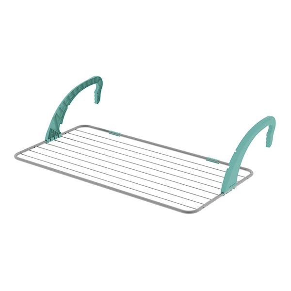 Rejilla en acero pintado anti-óxido. Brazos de plástico ajustables. Desplegado: 105x55xh.25 cm. . Plegado: 55x3,5xh.105 cm. Tendido 10 m. Medida rejilla: 55x105 cm.