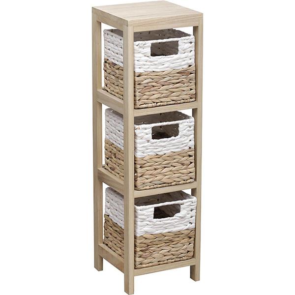 Modelos combinables. Fabricados en bamb? y fibras naturales. Mueble auxiliar 3 cestas. Blanco/natural.22x22 cm.