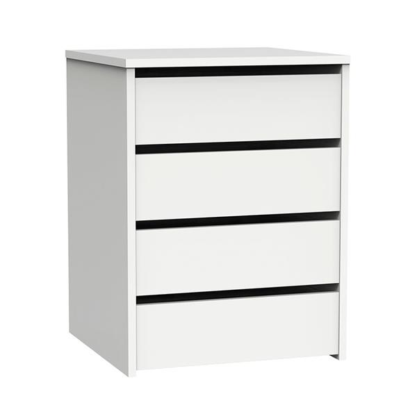 Aglomerado de part?culas y melamina de alta densidad. 4 cajones. Apilable. Mueble kit. para montaje. 46x45xh.63,5 cm. Blanco alto brillo.