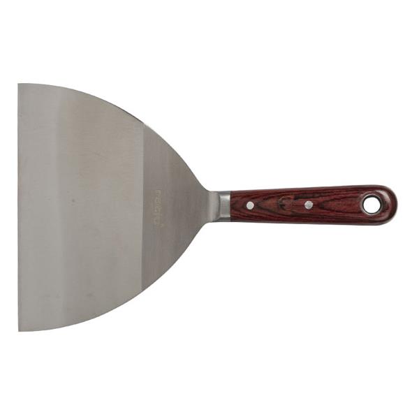 Hoja en acero inoxidable flexible y pasante hasta el mango. Mango madera de 105 mm largo. Espesor hoja: 1,5 ~ 0,5 mm. 150 mm.