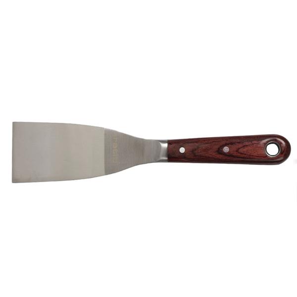 Hoja en acero inoxidable flexible y pasante hasta el mango. Mango madera de 105 mm largo. Espesor hoja: 1,5 ~ 0,5 mm. 50 mm.