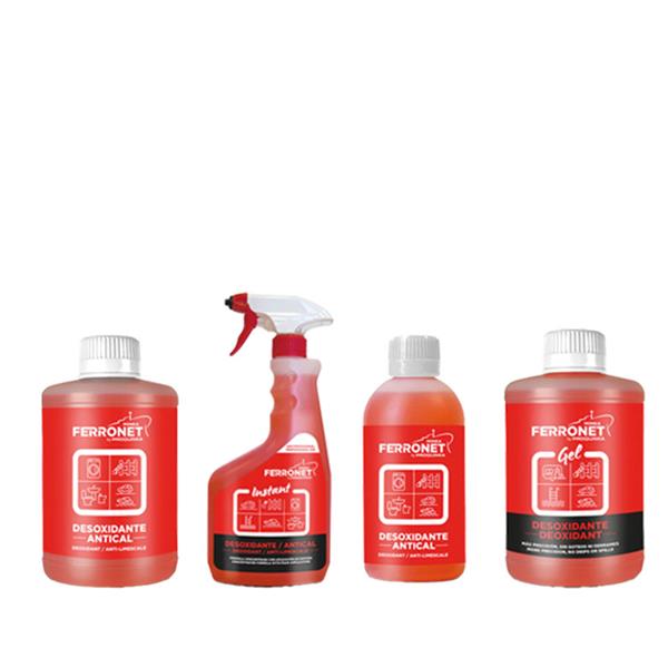 Resuelve de forma sencilla, rápida y eficaz, la eliminación de óxido de hierro y corrosión que se produce en las superficies metálicas expuestas en la humedad o en superficies o metálicas teñidas por óxido de hierro procedente de oxidaciones por contacto. También eficaz para la eliminación de incrustaciones calcáreas y tiene una alta efectividad desengrasante. Botella 1 kg.